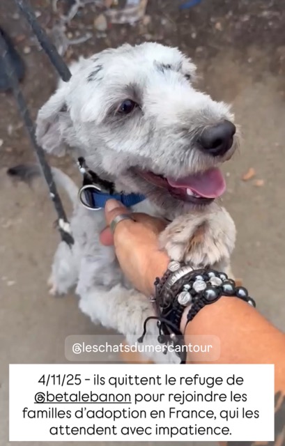 *Ce chien est actuellement au Liban et ne sera rapatrié en France, dans le 06, que lorsqu'une famille d’accueil ou d'adoption se proposera de l’accueillir. La date du rapatriement dépendra de la disponibilité des vols. Merci donc de faire preuve de compréhension et de patience