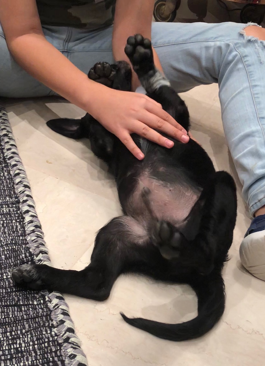Il est né le 1/8/18 environ, et il pèse 6,5kg en ce jour de mi-novembre. Nous pouvons donc estimer qu’il pèsera une vingtaine de kg à l’âge adulte (c’est une simple estimation).
