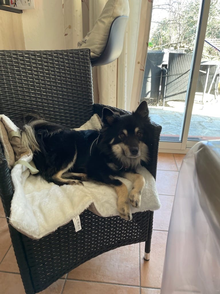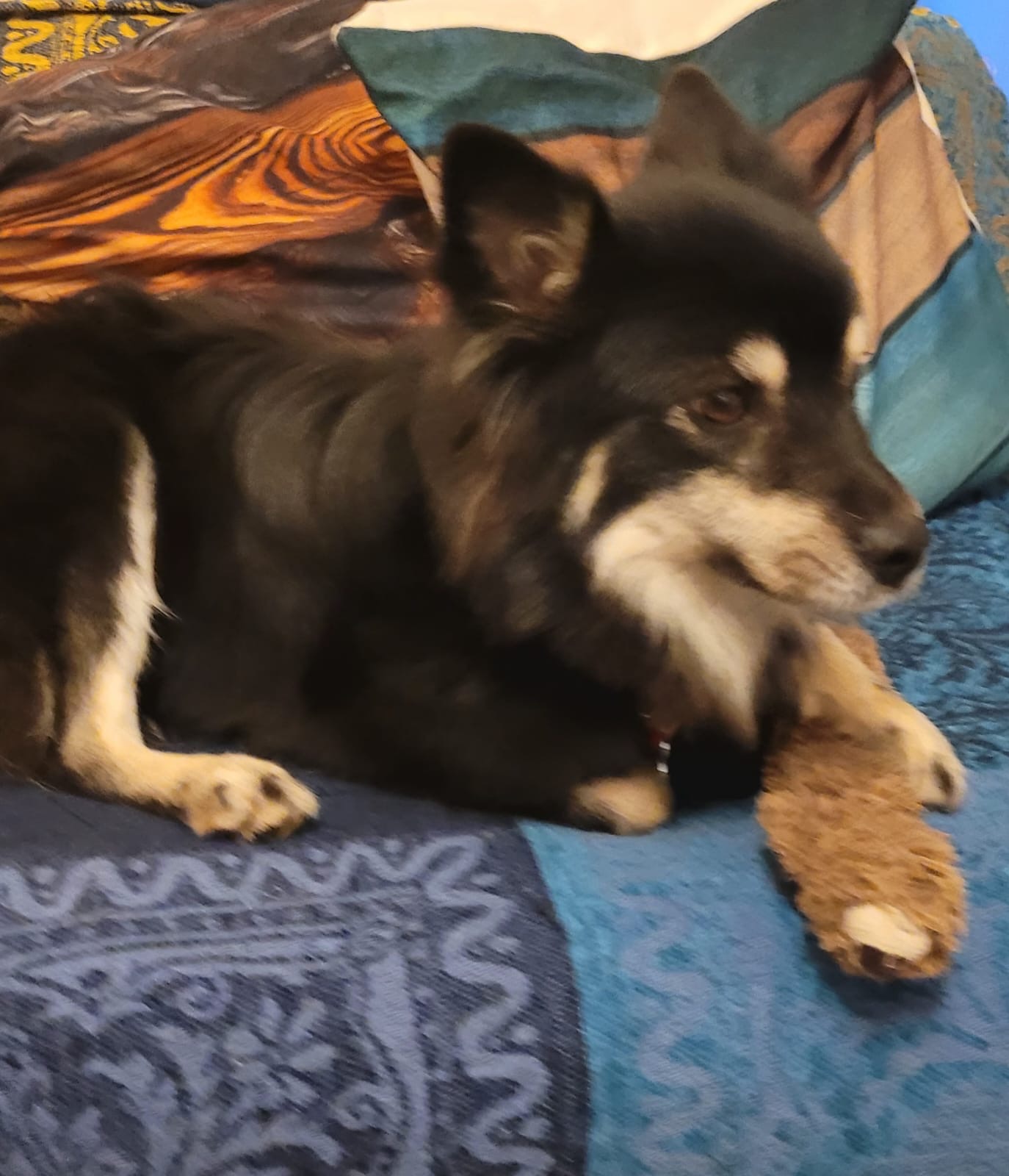 UKIYO est un chien de type Spitz, non lof, couleur tricolore.