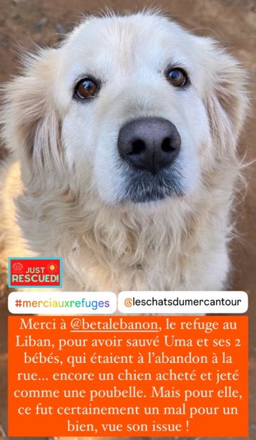 UMA a été trouvée abandonnée à la rue, avec ses 2 chiots. Prise en charge par le refuge BETA LEBANON, au Liban.