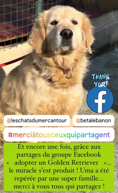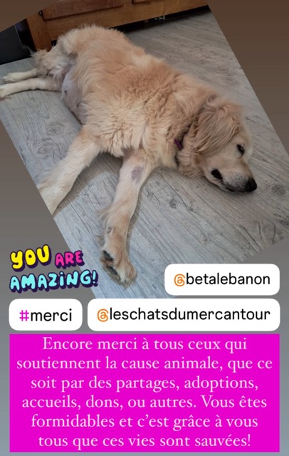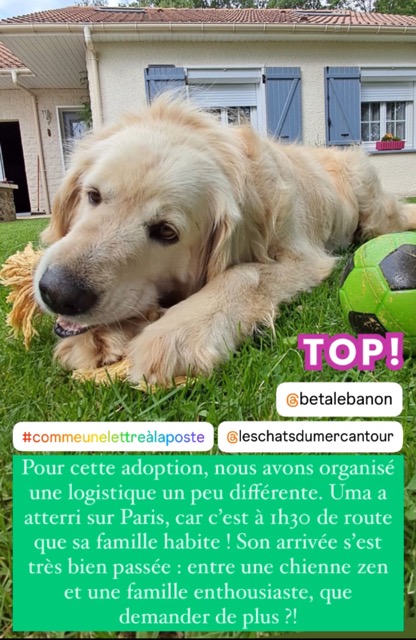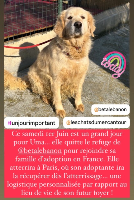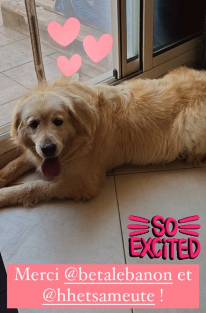 *Ce chien est actuellement au Liban et ne sera rapatrié en France, dans le 06, que lorsqu'une famille d’accueil ou d'adoption se proposera de l’accueillir. La date du rapatriement dépendra de la disponibilité des vols. Merci donc de faire preuve de compréhension et de patience