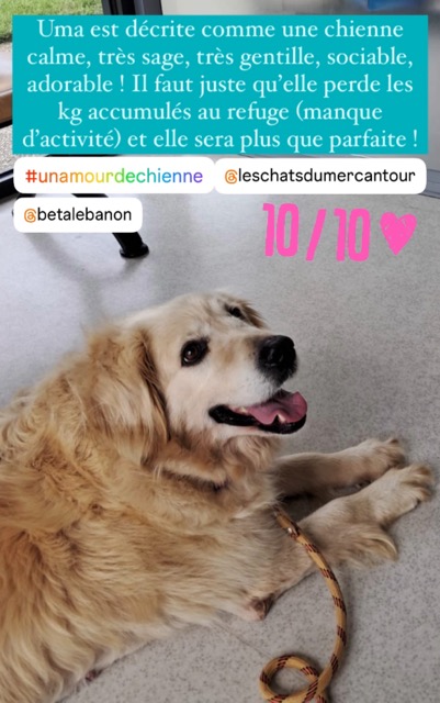 UMA est une chienne de type Golden Retriever, non lof, couleur sable.