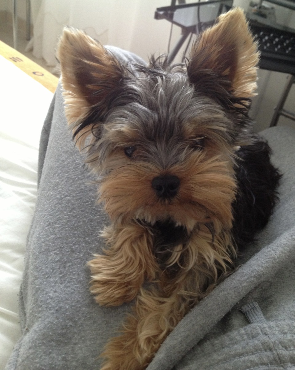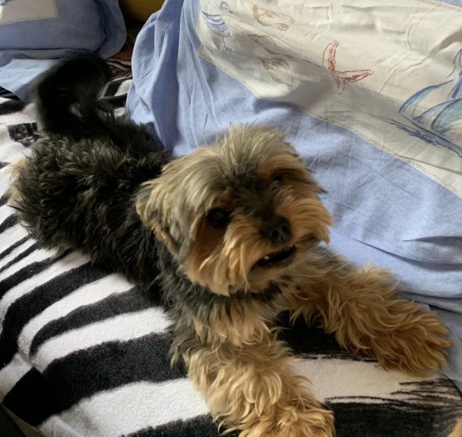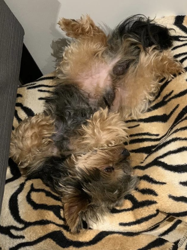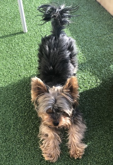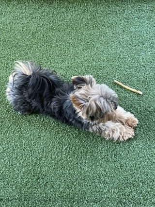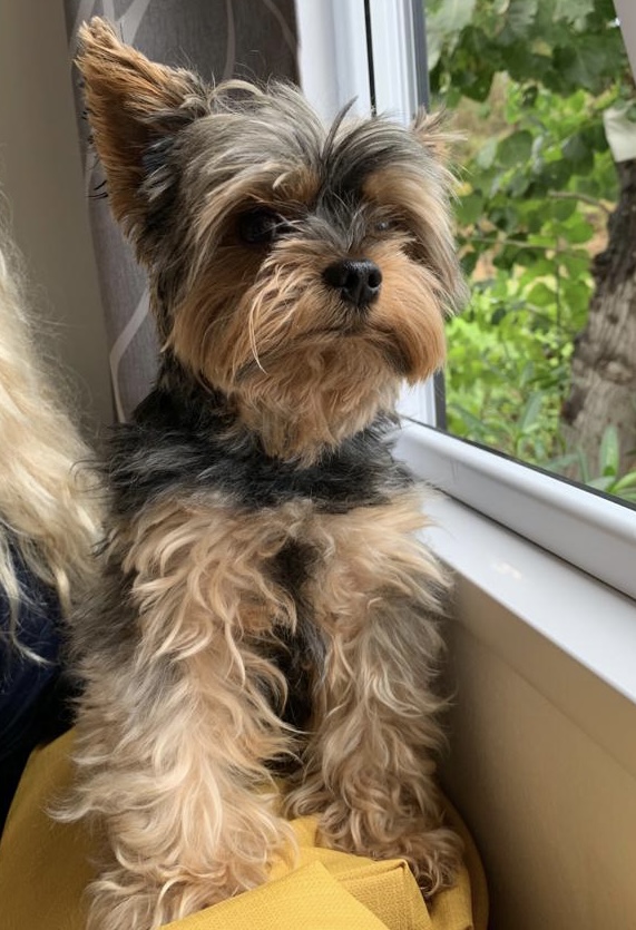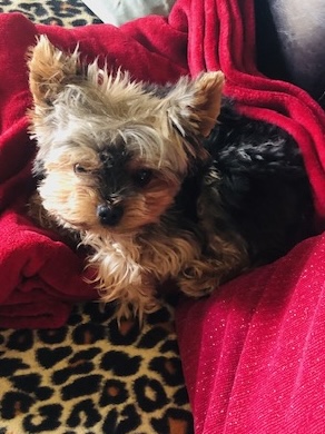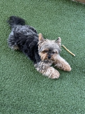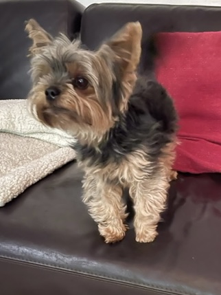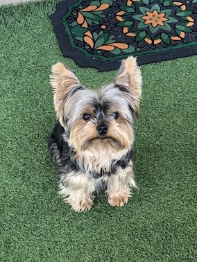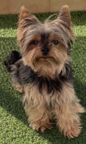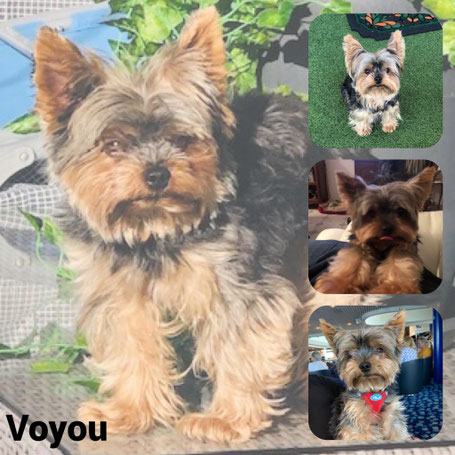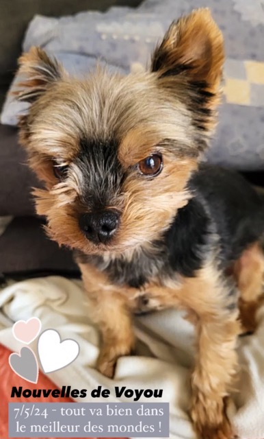Voyou est un chien de type Yorkshire Terrier, non LOF, couleur noir et feu.