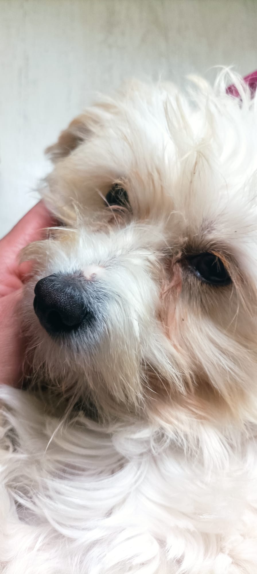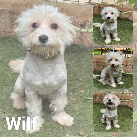 WILF est un chien de type croisé Bichon, non lof, couleur blanc.