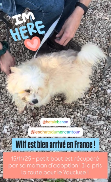 *Ce chien est actuellement au Liban et ne sera rapatrié en France, dans le 06, que lorsqu'une famille d’accueil ou d'adoption se proposera de l’accueillir. La date du rapatriement dépendra de la disponibilité des vols. Merci donc de faire preuve de compréhension et de patience
