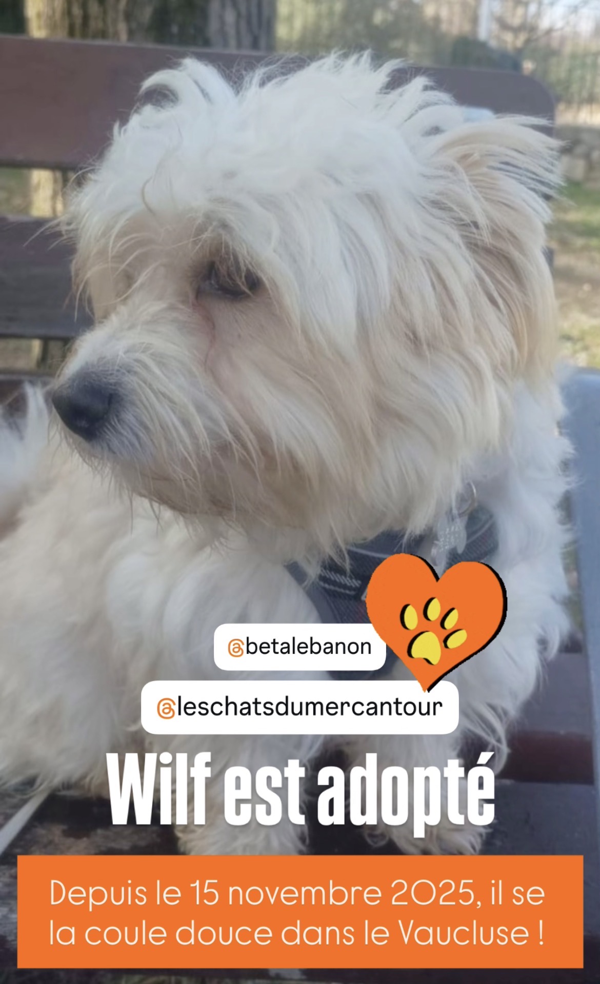 *Ce chien est actuellement au Liban et ne sera rapatrié en France, dans le 06, que lorsqu'une famille d’accueil ou d'adoption se proposera de l’accueillir. La date du rapatriement dépendra de la disponibilité des vols. Merci donc de faire preuve de compréhension et de patience