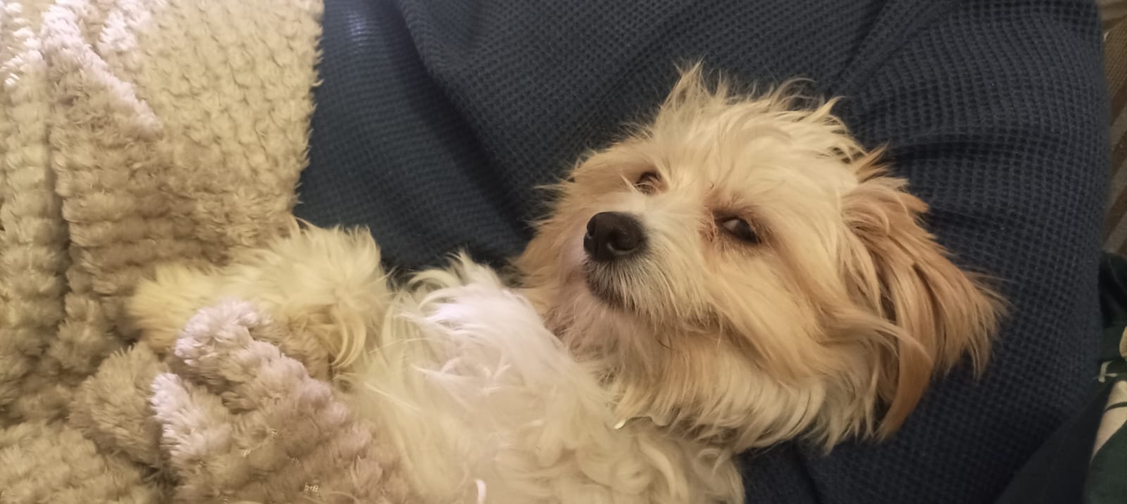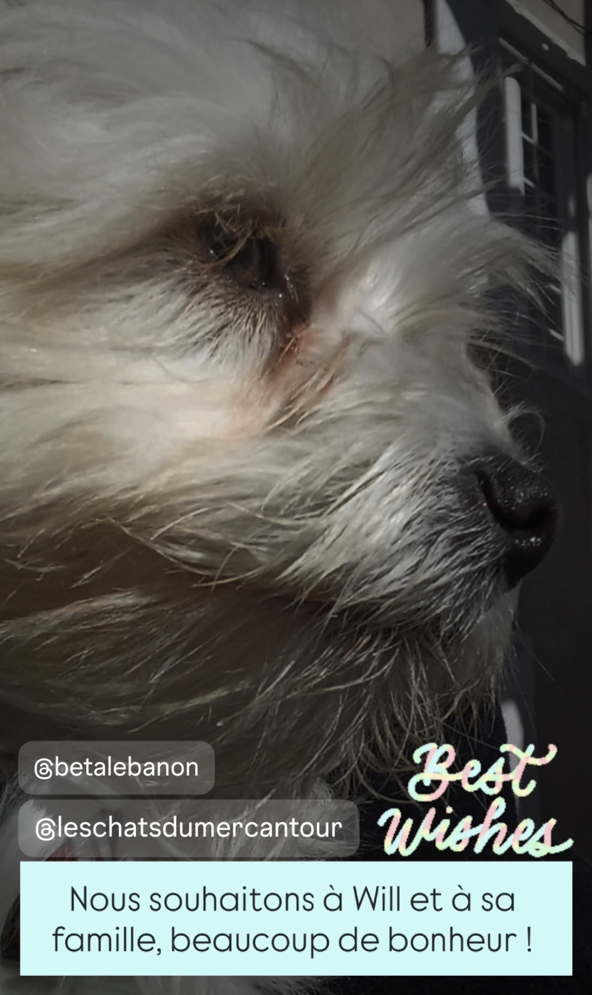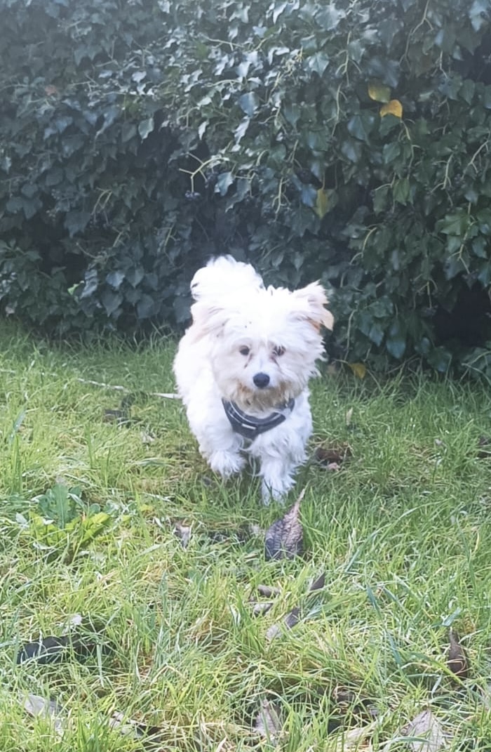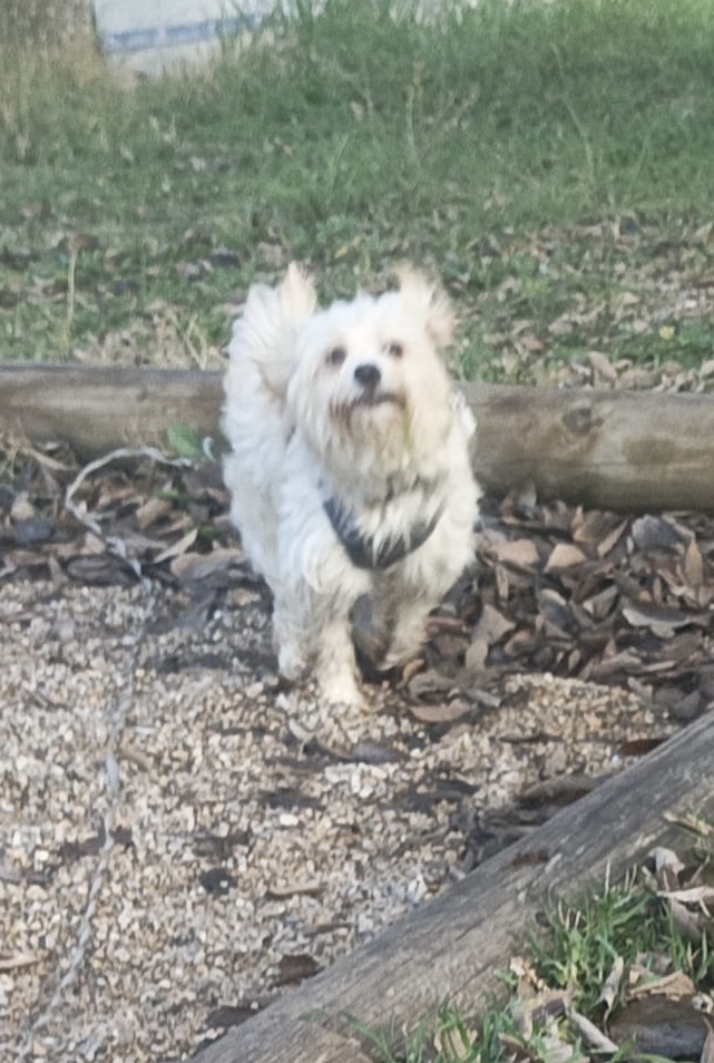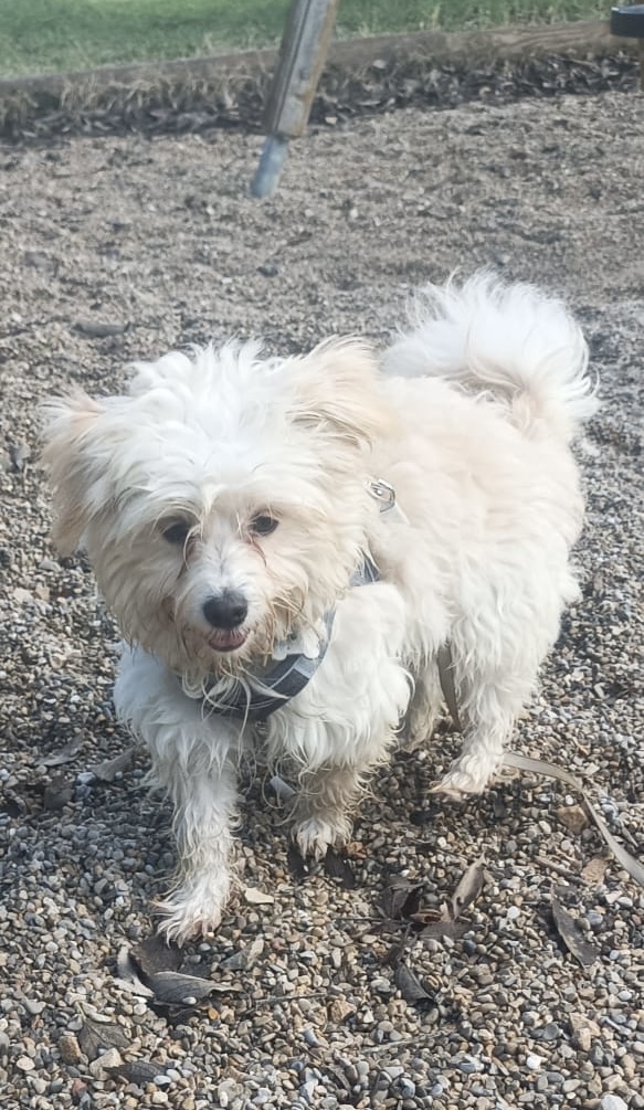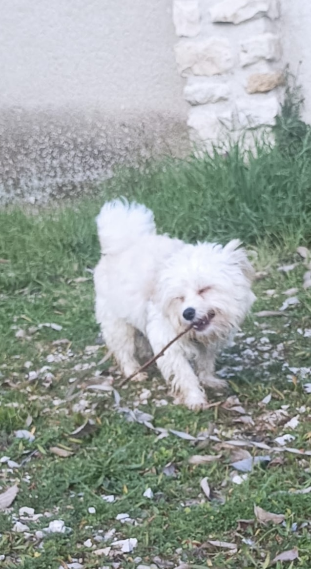 WILF est un chien de type croisé Bichon, non lof, couleur blanc.