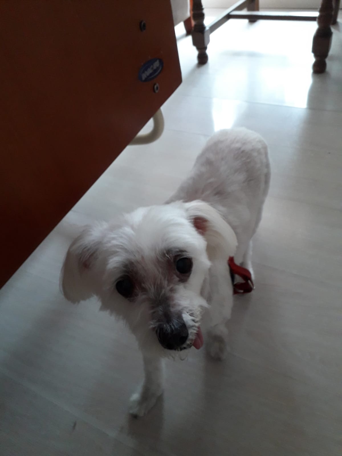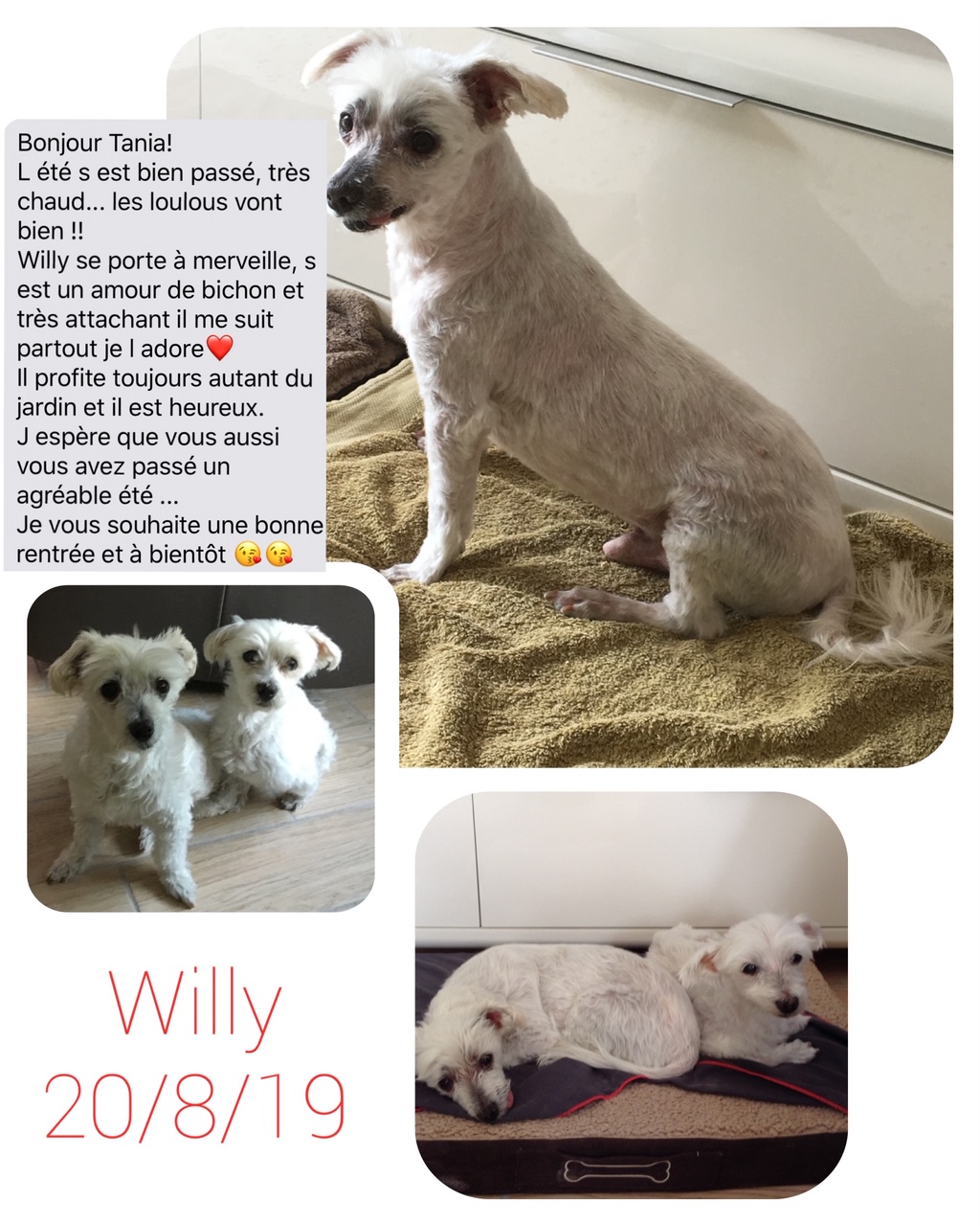 WILLY est un chien de type Bichon, non lof, blanc. Mâle castré, pucé 250269600369359, vacciné.