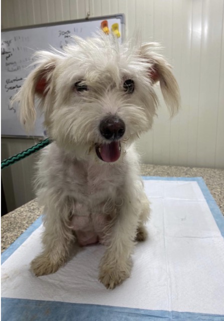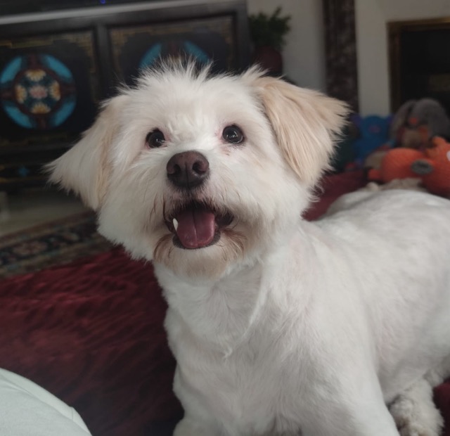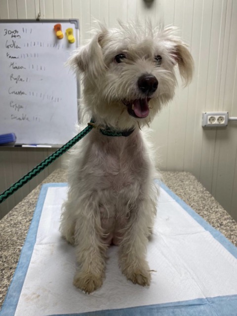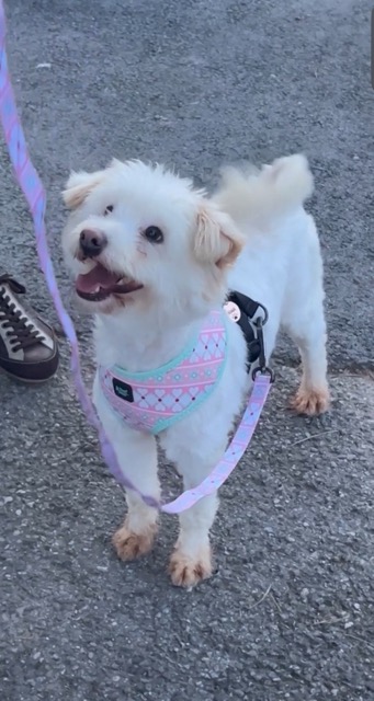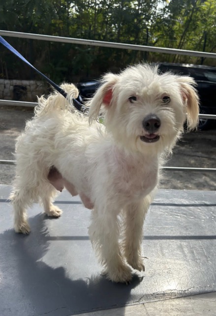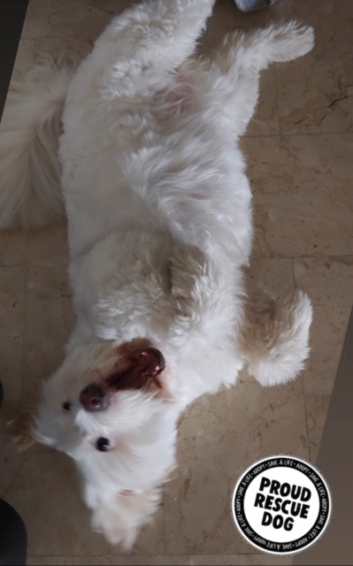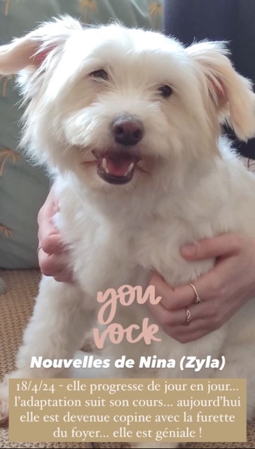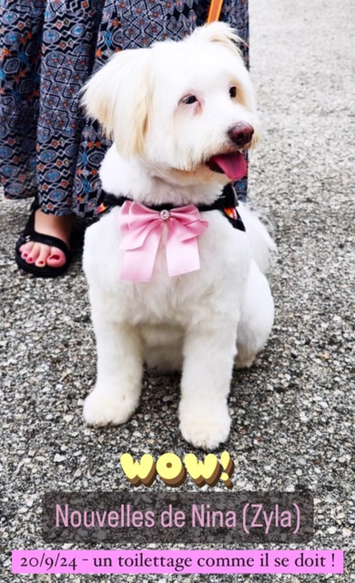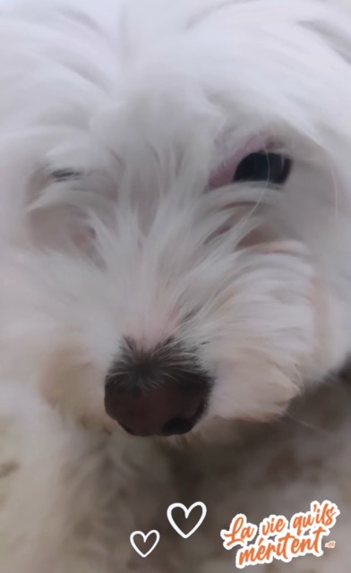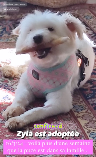 ZYLA est une chienne de type croisée bichon, non lof, couleur blanche.