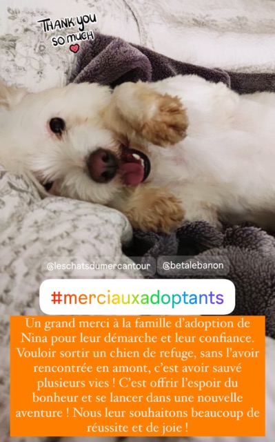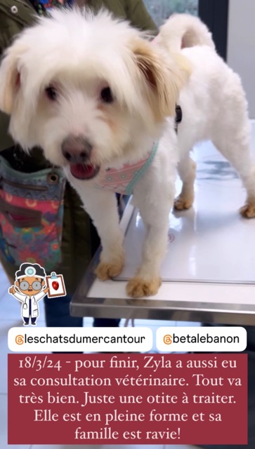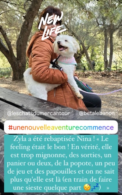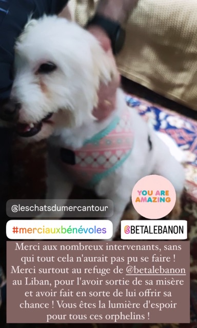 Recueillie et prise en charge par le Refuge de l’association BETA LEBANON, où elle se trouve encore actuellement, dans son pays d’origine.
