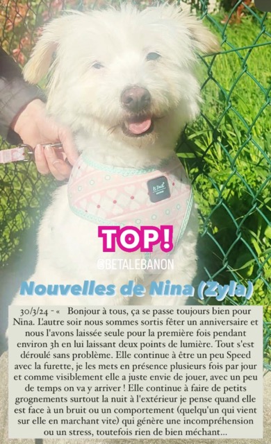 *Ce chien est actuellement au Liban et ne sera rapatrié en France, dans le 06, que lorsqu'une famille d’accueil ou d'adoption se proposera de l’accueillir. La date du rapatriement dépendra de la disponibilité des vols. Merci donc de faire preuve de compréhension et de patience