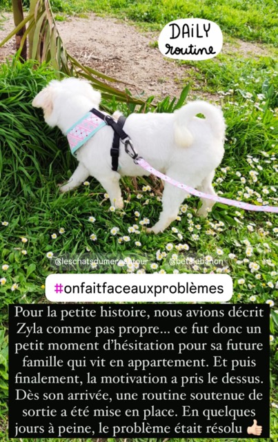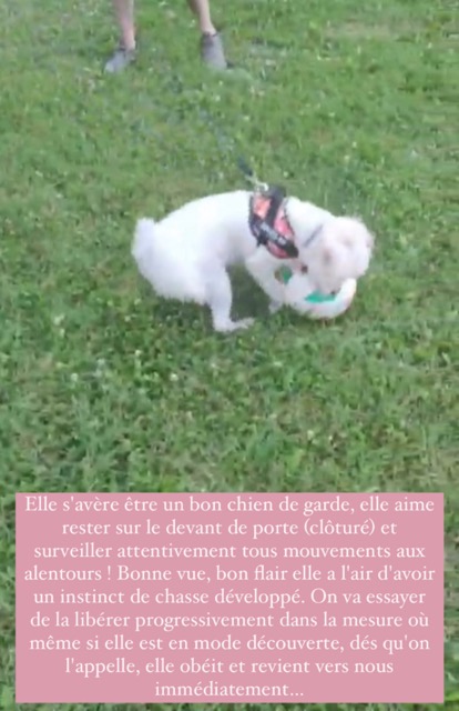 *Actuellement dans un cadre non familial, nous ne pouvons fournir plus d’informations sur son niveau d’éducation (propreté, aboiements, etc.). Comme pour tout chien, il relève aussi de l’engagement et de la disponibilité de sa future famille, de prendre le temps pour une bonne adaptation, de s’investir sur les apprentissages et de lui offrir une vie équilibrée et adaptée à ses besoins.